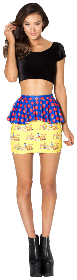 Even the most enchanted lives have ups and downs – people who want to help you and people who, well, don’t. This peplum skirt features the two sides of Snow White’s life – the friendly forest creatures and the tempting but deadly poison apple. We love this skirt with cute, feminine blouses and heels.